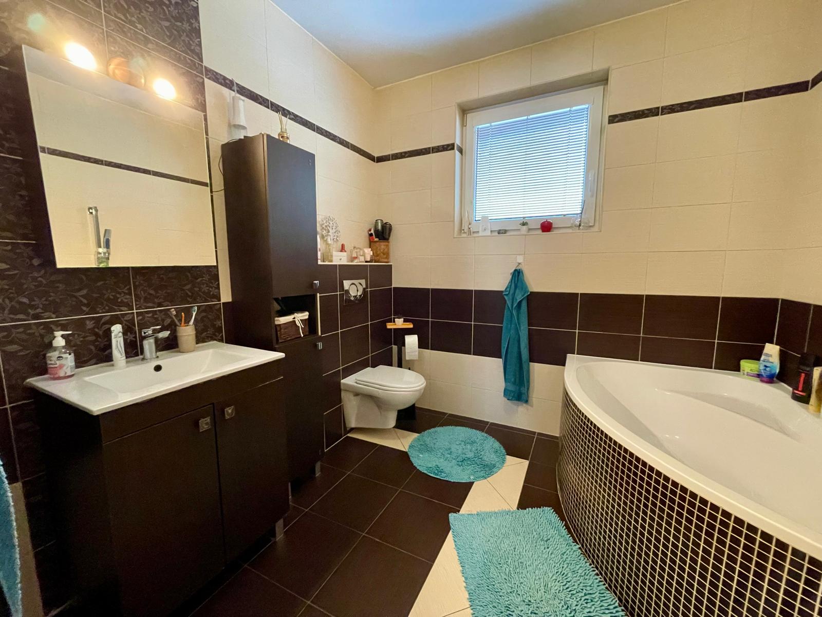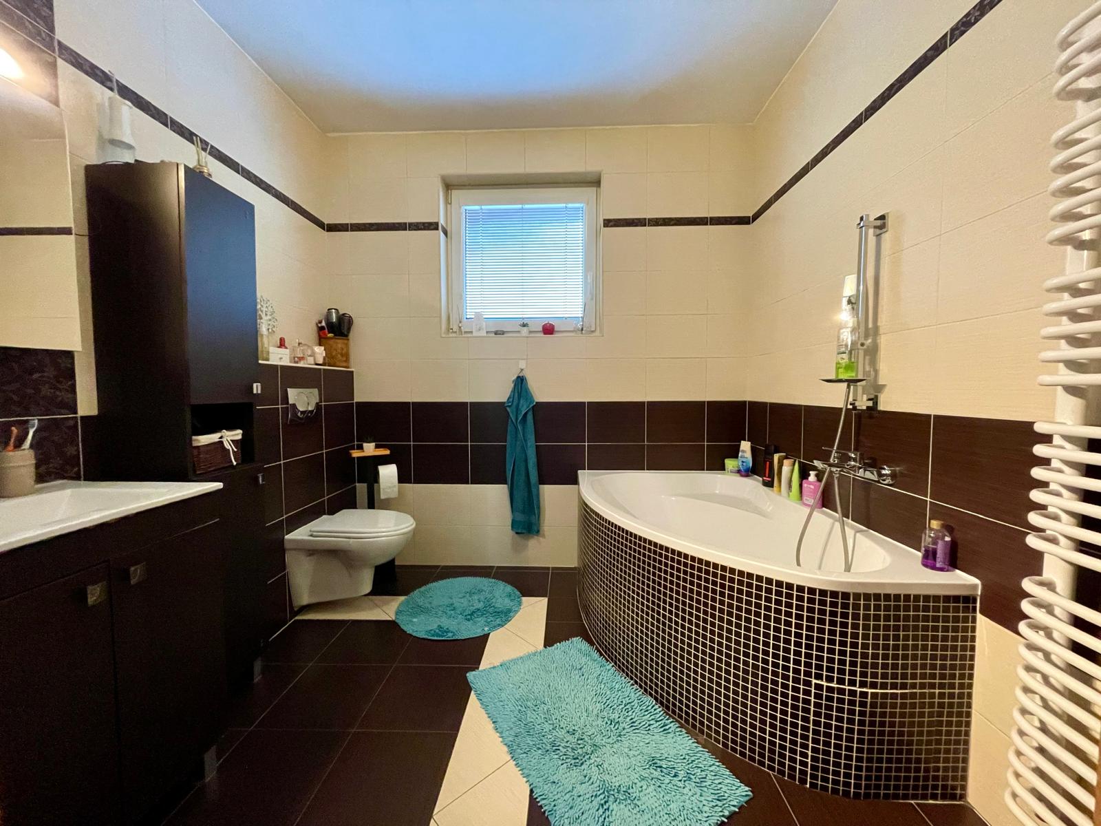- Priestranná kúpeľňa s rohovou vaňou a WC